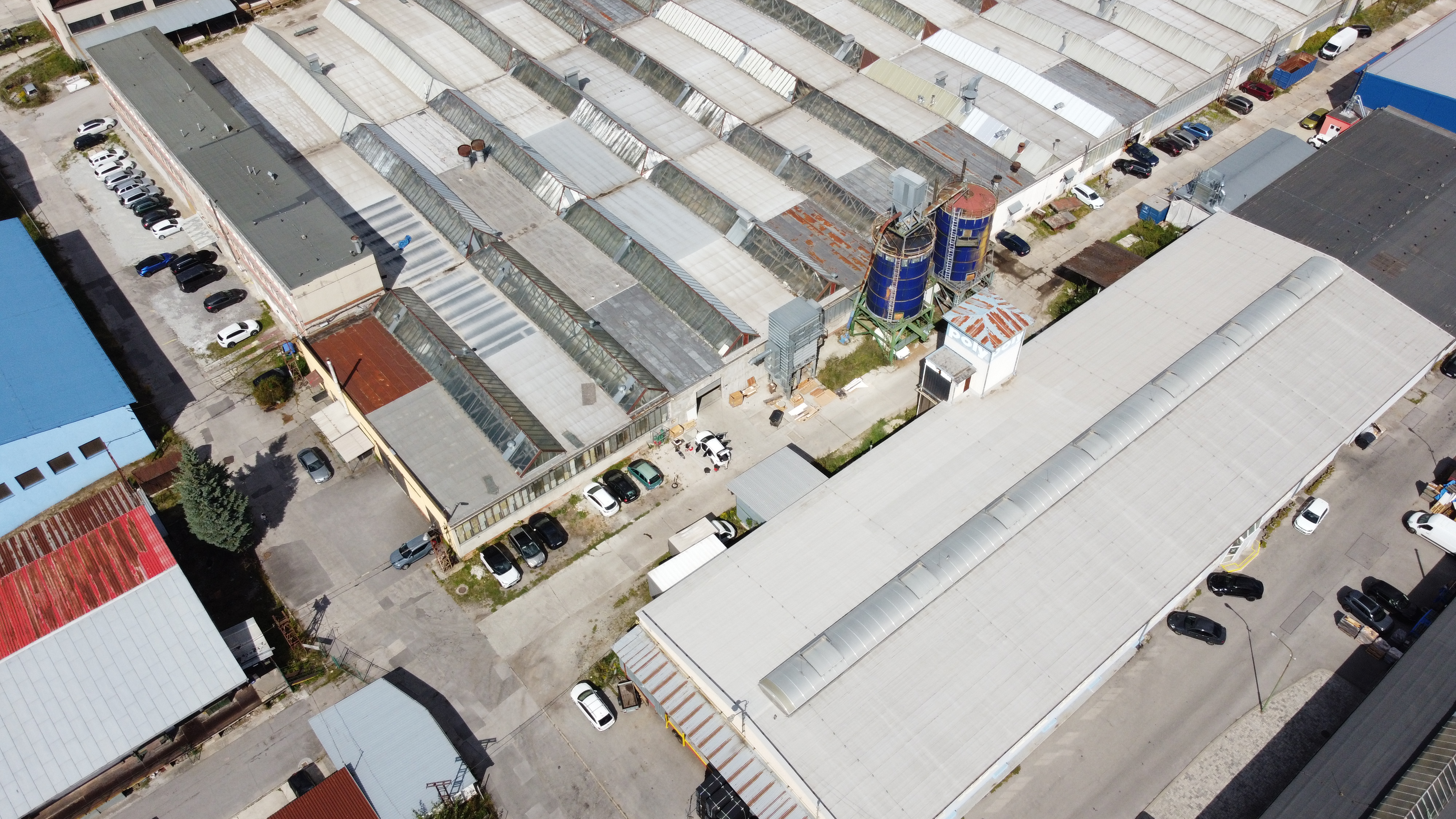 • Zázemie: 160 m² – 2 kancelárie, kuchynka, 2× sociálne zariadenie