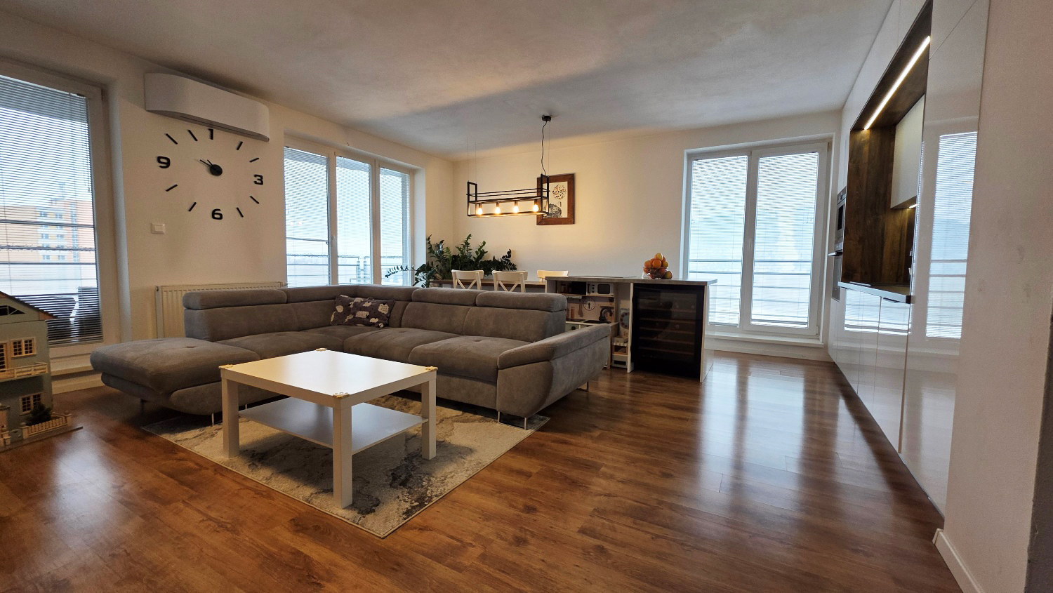 85,86 m² so škandinávskou dušou na 6. zo 7 poschodí tehlového domu s výťahom. Svetlý, vzdušný priestor s umeleckými prvkami a elektrickým krbom. Lodžia /7,98 m²/ s výhľadom na západ, pivnica /3,46 m²/ na rovnakom podlaží. Kľúčom otočíte a bývate: kompletná kuchynská linka s ostrovom, prémiová technika, nadčasový nábytok. Všetko ostáva.