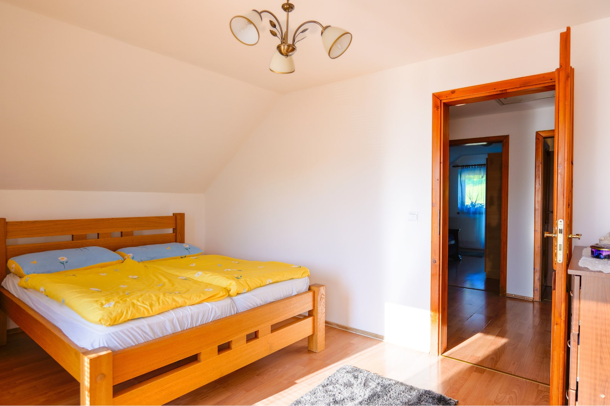 • 2. nadzemné podlažie: 3 samostatné izby s východom na balkón, kúpeľňa s vaňou a druhé WC. Z tohto podlažia je východ na povalu, ktorá poskytuje dostatok úložného priestoru.