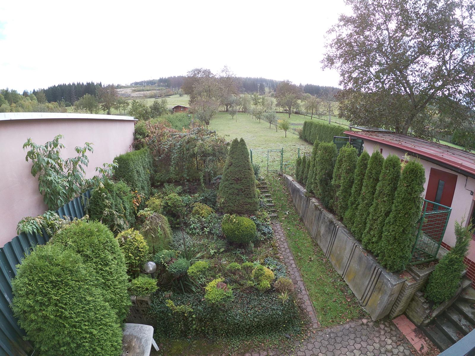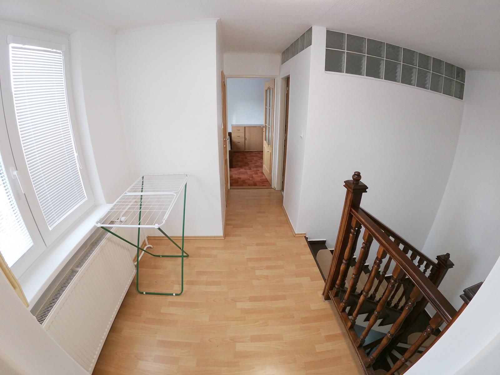 Na hornom poschodí  druhého domu sa nachádzajú ešte 2 spálne, kúpeľňa s WC, šatník a terasa. Dom je podpivničený, je tam situovaná práčovňa a pod. Za domom sa nachádza udržiavaná záhrada o výmere 935 m2 a tiež menší domček na náradie. Pred domom priamo z ulice sú 2 parkovacie miesta a vo dvore je možnosť zaparkovať ďalšie 3 autá. V prípade potreby je možnosť aj garáž.